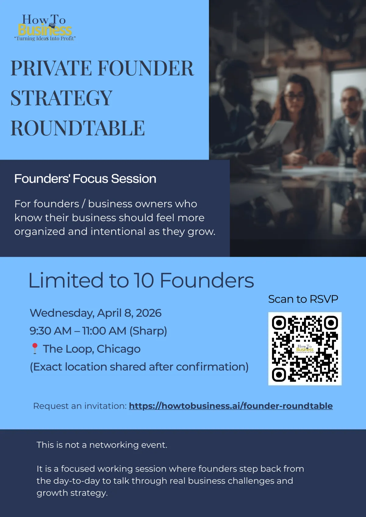This is not a lecture or presentation. It’s a thoughtful conversation with other founders who are actively building their businesses.